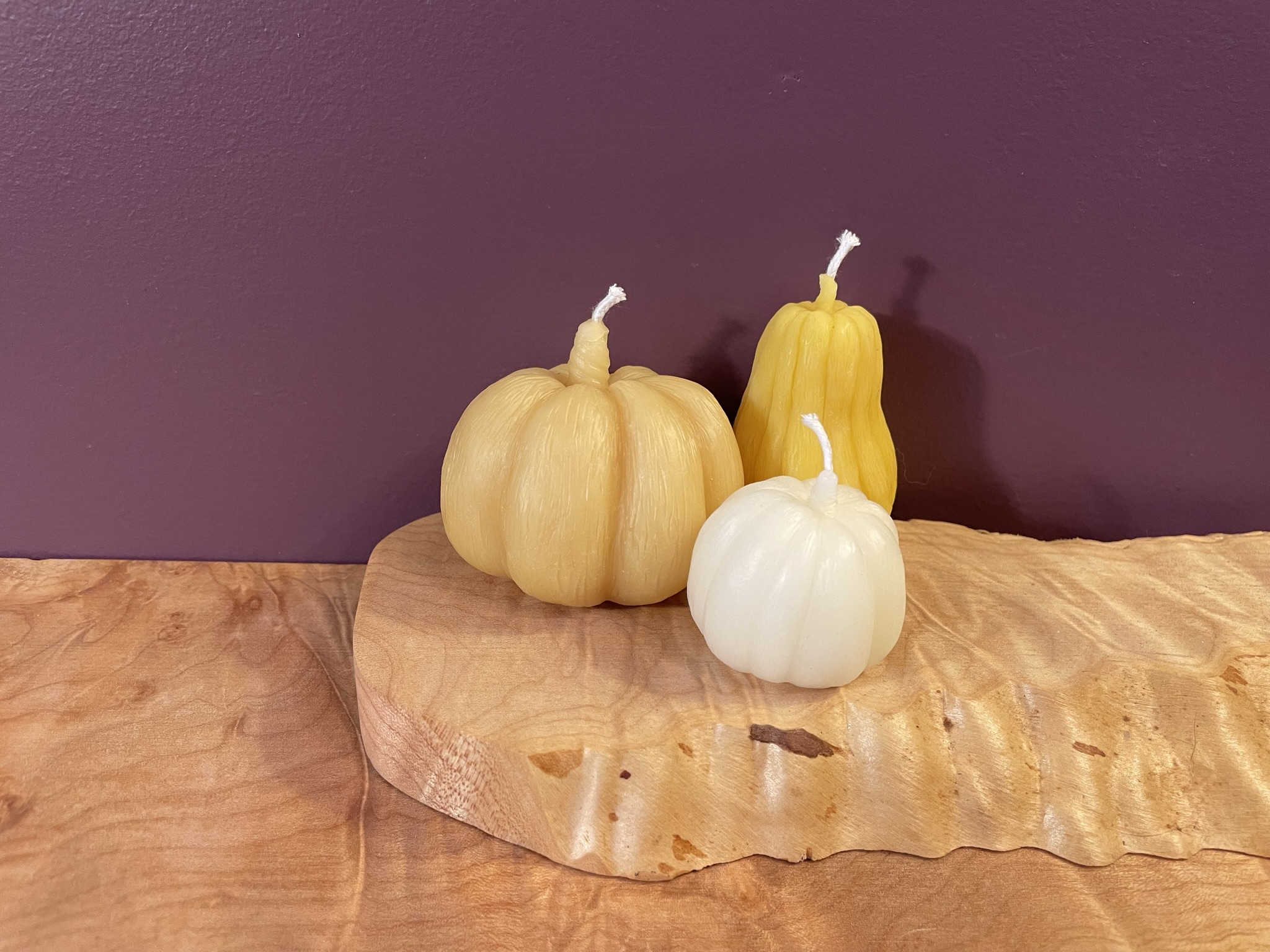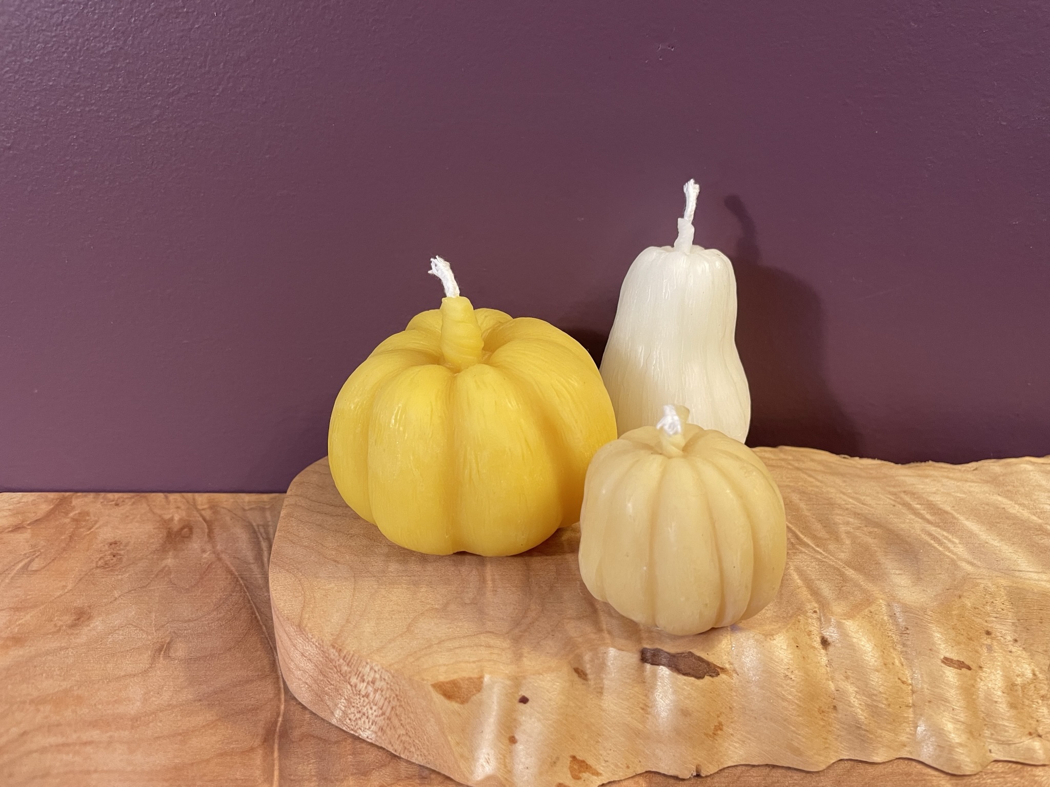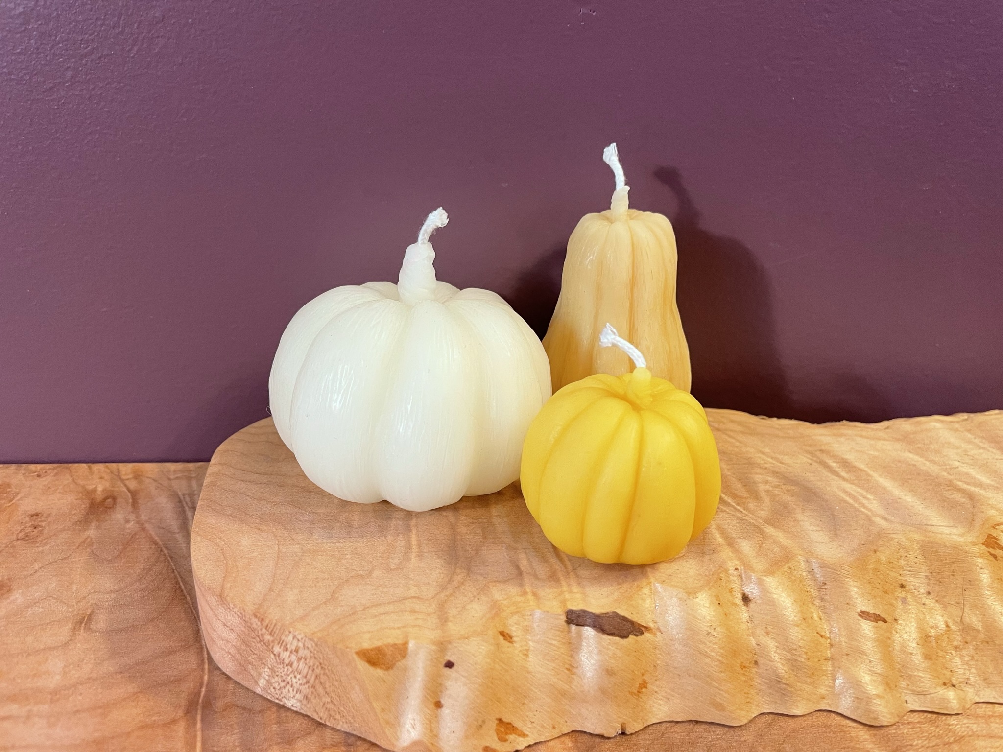 This set of pumpkin candles comes in three different shades of beeswax. All natural with no dyes. Perfect to decorate for the harvest season!